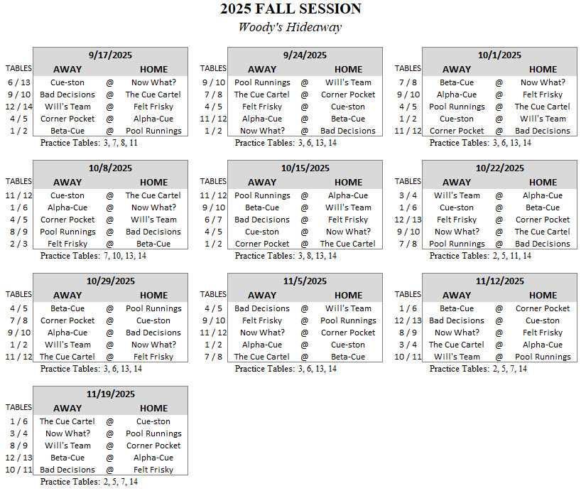 Calendar   |   Matchups   |   Standings   |   Table Assignments   |   Updates