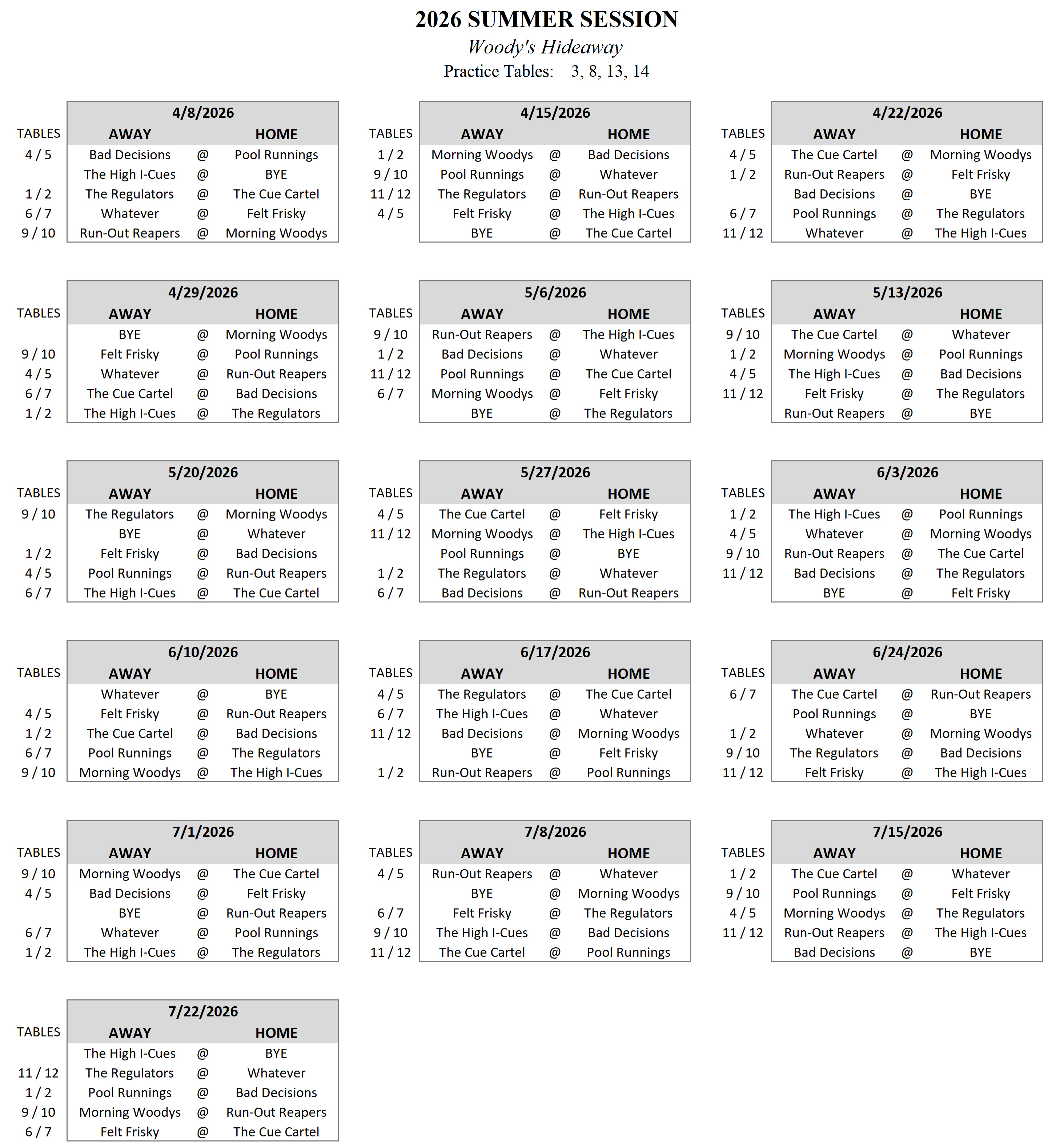 Calendar   |   Standings   |   Table Assignments   |   Updates