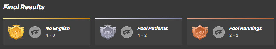 Fall session has come to an end and the results are in! Please congratulate the following winning teams and qualifications: